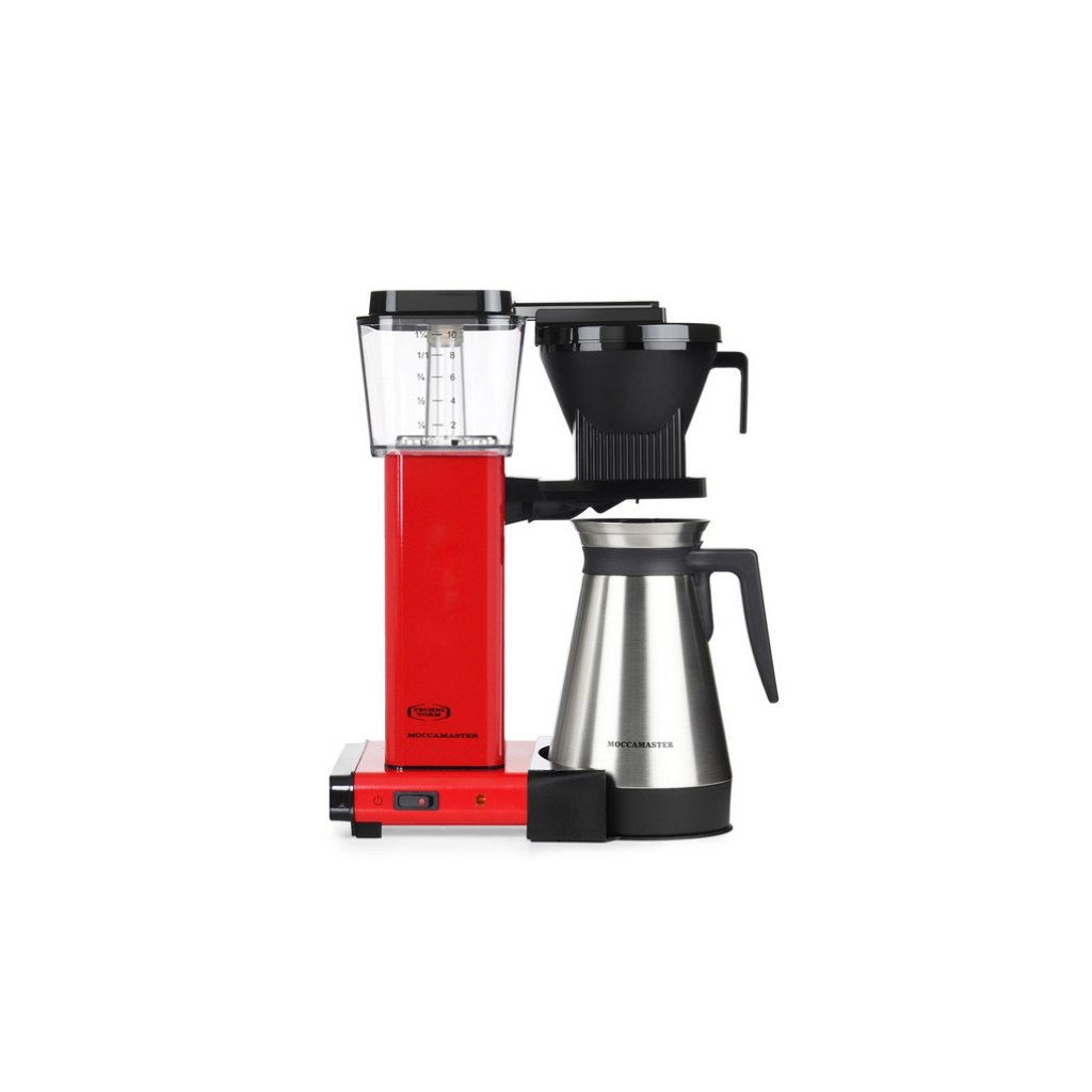 Červený automatický překapávač Moccamaster KBGT 741 s termoskou o objemu 1,25 l. Ideální pro větší domácnost nebo kancelář.