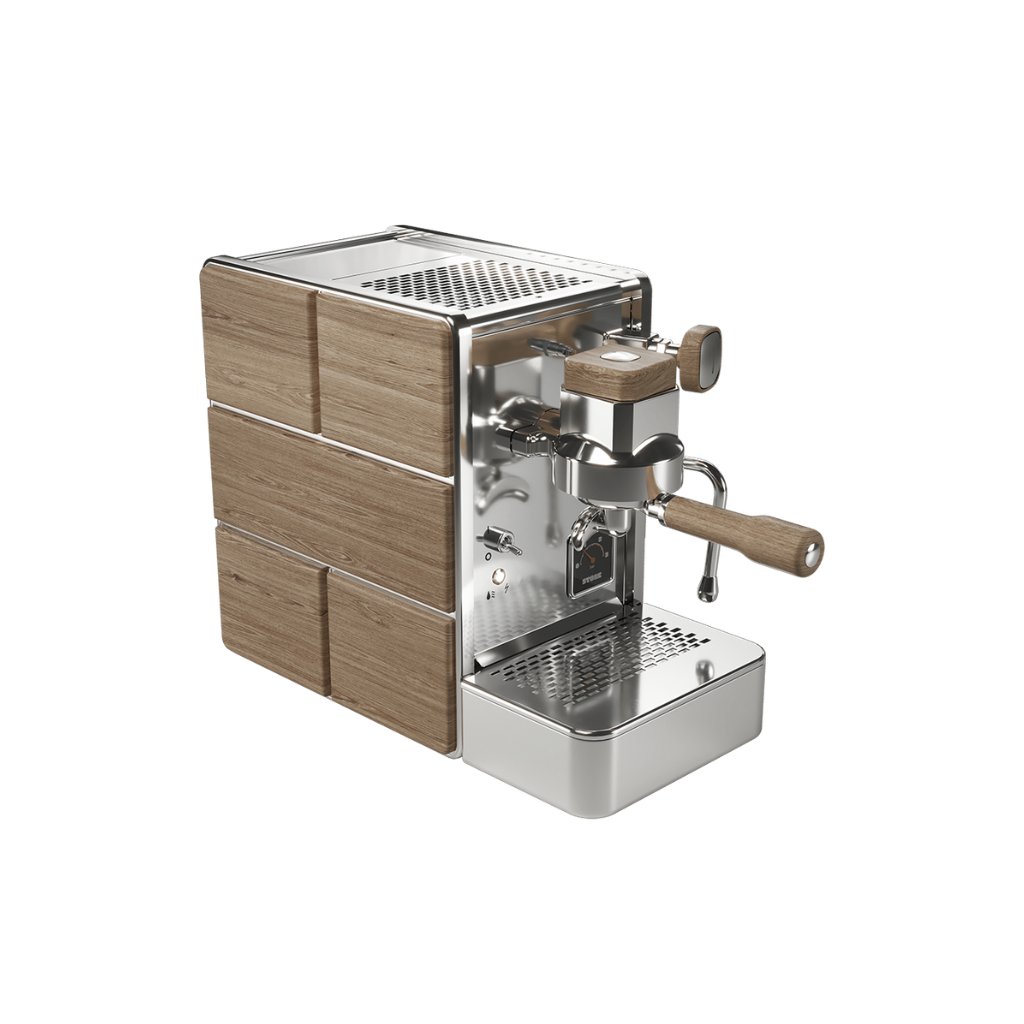 Domácí pákový kávovar Stone Espresso se vyrábí v Italském Miláně. Zamýšlen jako výkonný domácí kávovar, který přizpůsobíte prostoru, nikoli naopak. Model Mine Premium Wood má pochromované boky a dřevěné boční panely.